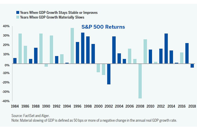 Historically the S&P 500 Has Mostly Risen During Slowing GDP Growth