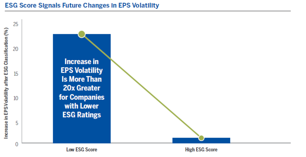ESG investments have strong potential for mitigating risk by providing earnings stability. Highly rated ESG companies may do more than benefit society—they may benefit your portfolio too.