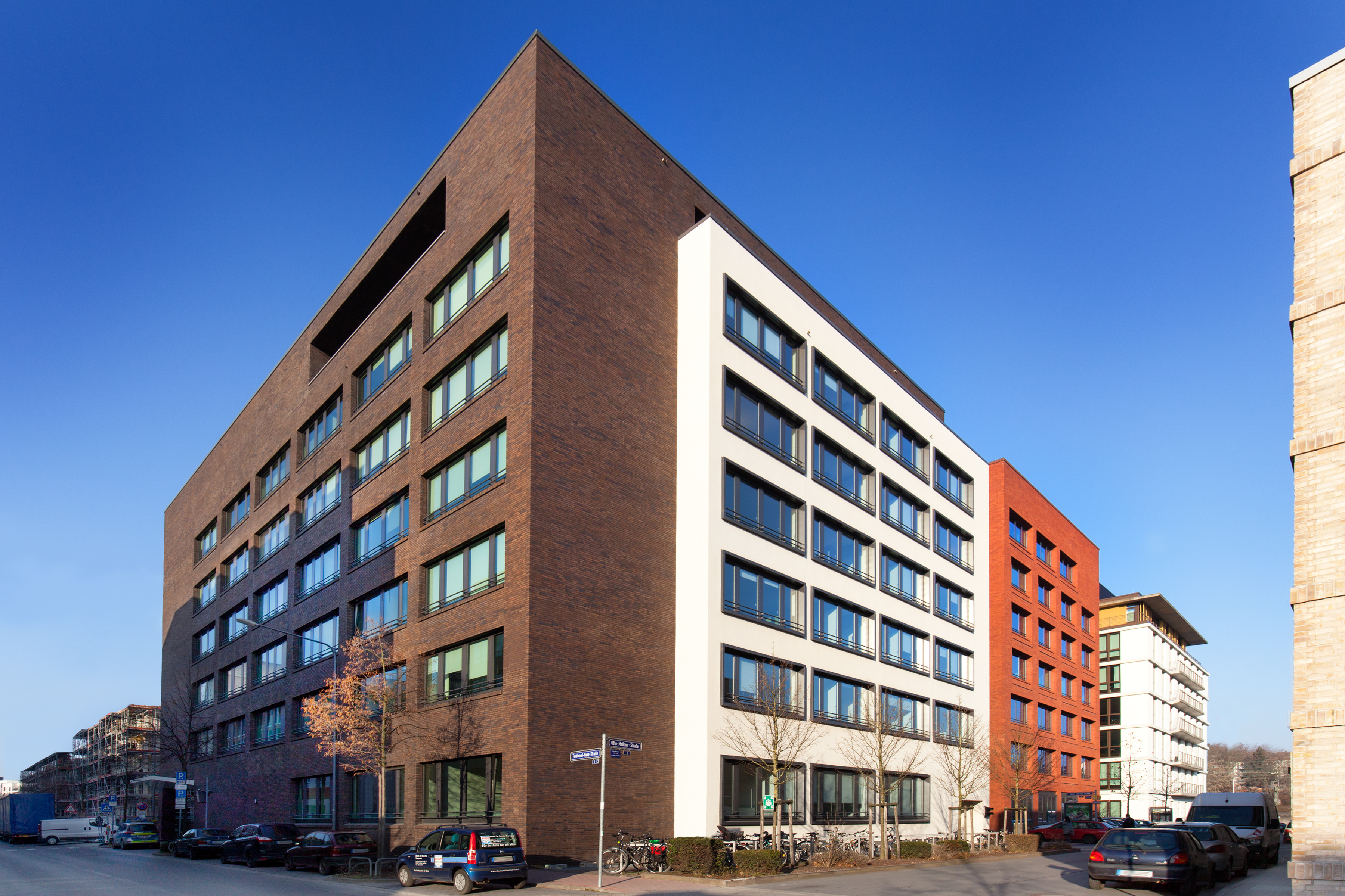 The building, named Campus 53, was built in 2011 in a newly developed urban retail, office and residential neighborhood (Schwedler Carré), located off the main road, Hanauer Landstrasse, and just 500 meters from the Ostbahnhof railway station.